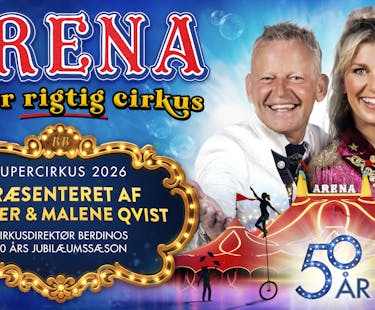 - 2. april 2026torsdag 16.00København NVCirkuspladsen ved BellahøjCirkus Arena 2026 m. Bubber og Malene